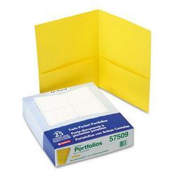 Twin-Pocket Portfolios Leatherette-grained stock. Business card slots. For 11 x 8-1/2 sheets. 25 portfolios per box. Yellow This Green product contains 10% post-consumer recycled content and 10% total recycled content. SOLD AS: Box STOCK NUMBER: 57509 UPC: 078787575097